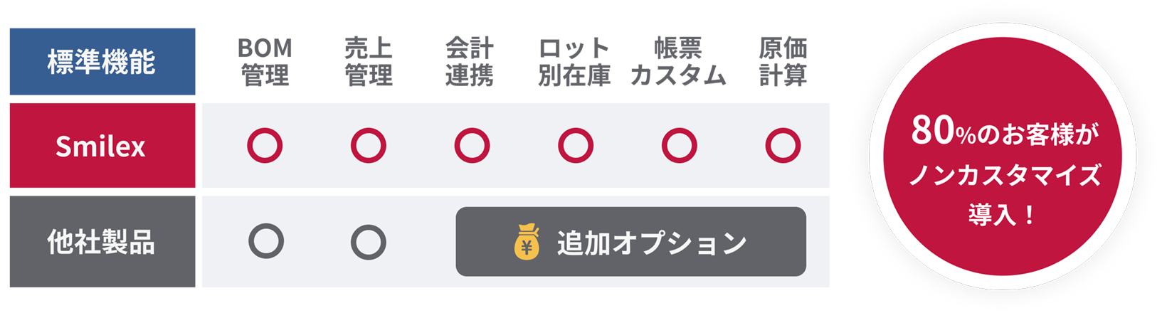 特に組立工程においてはBOM(部品表)に対応しており、前工程の検査結果をシステムが自動でチェックすることでNG流出を防ぐ仕組みをサポートします。